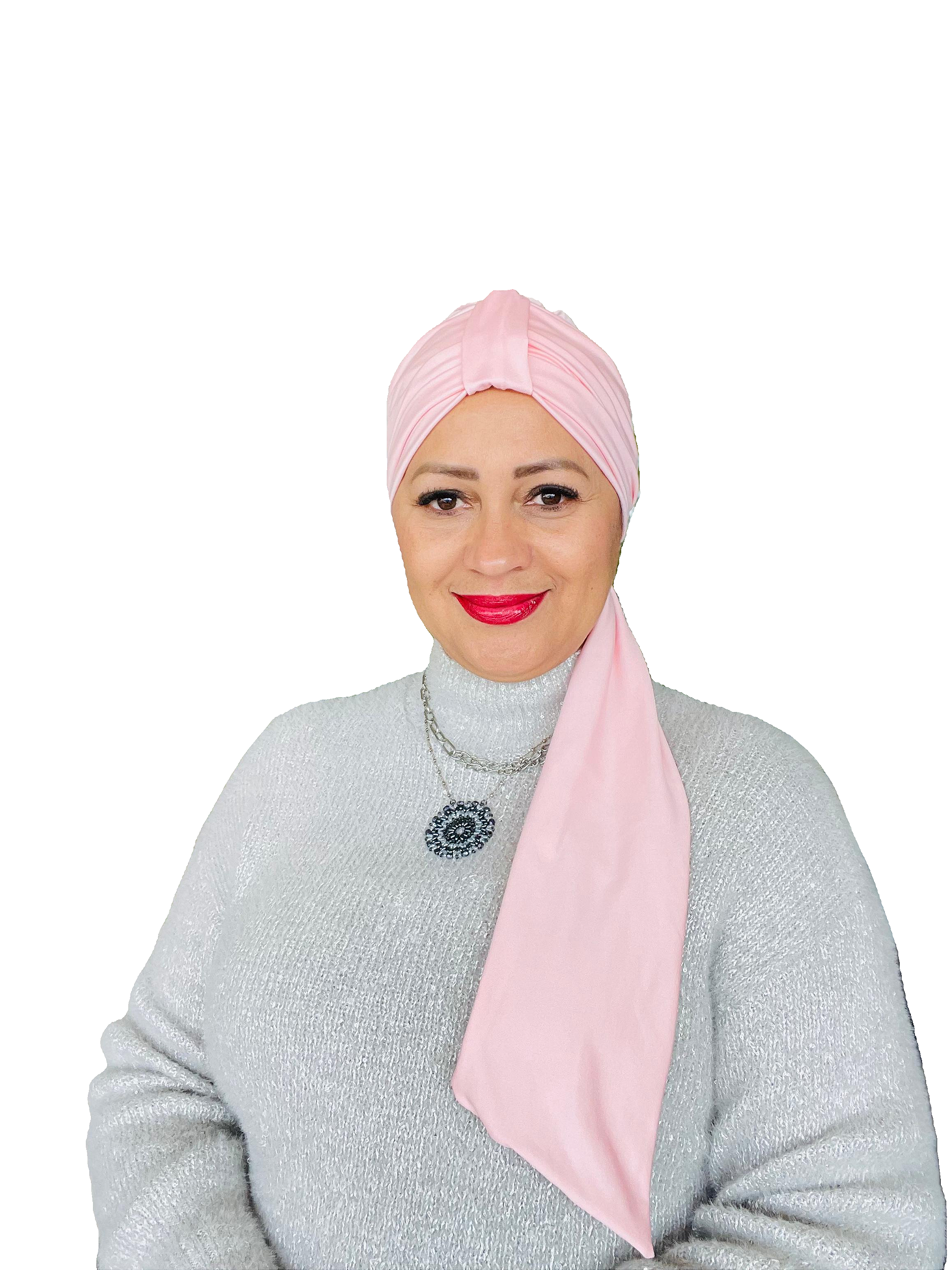 Este turbante é confeccionado no tecido de liganete cor lisa 92% poliester e 8% elastano, sem forro. 52cm de Diametro. (tecido bem fino para não aquecer muito a cabeça)